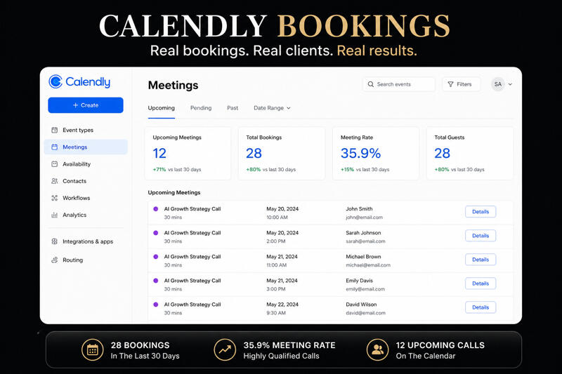 These are real scheduled calls generated through our AI outreach—no ads, no fluff
