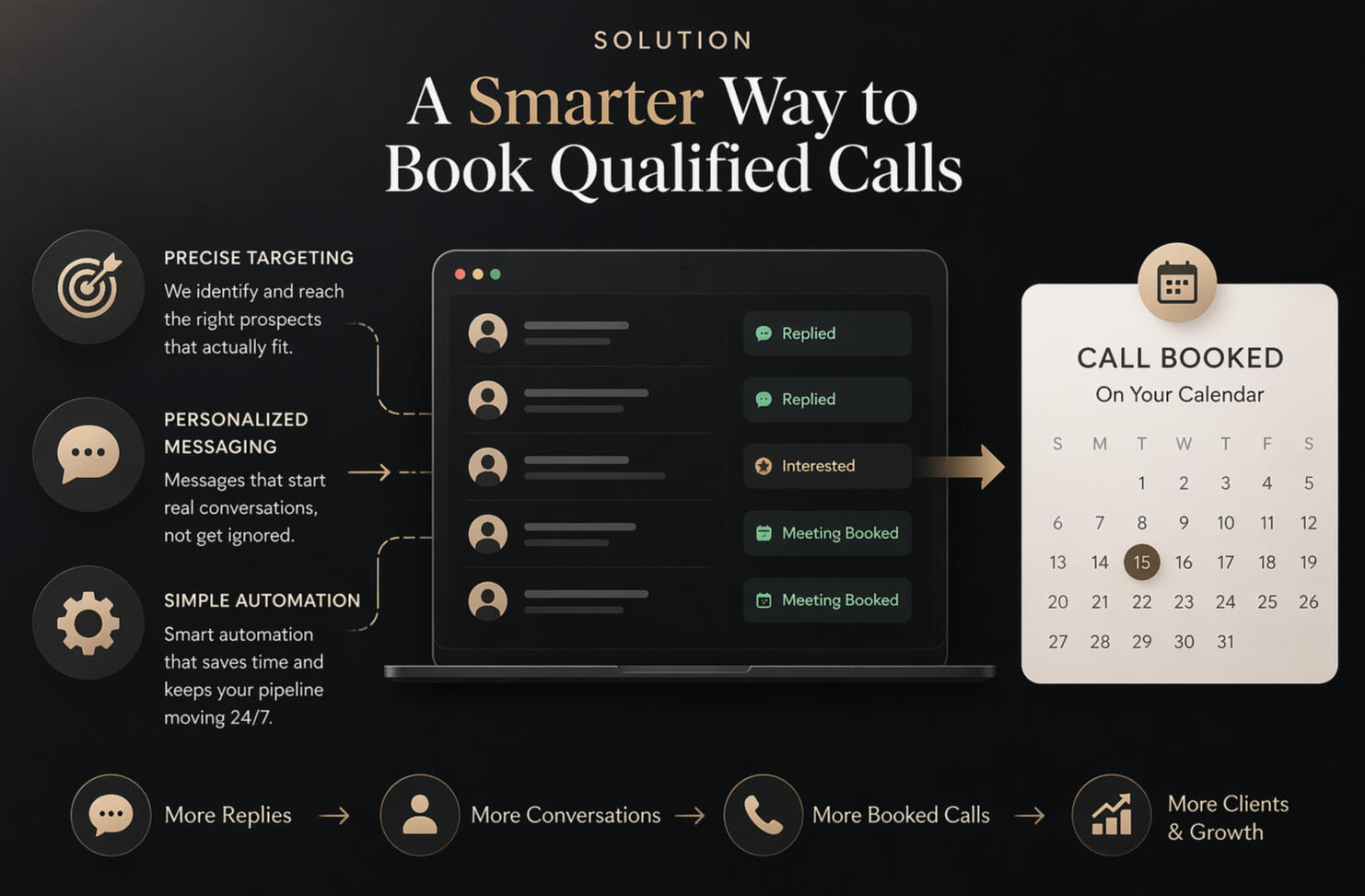 We build and manage a done-for-you outbound system that brings you qualified leads, starts real conversations, and books calls directly into your calendar
